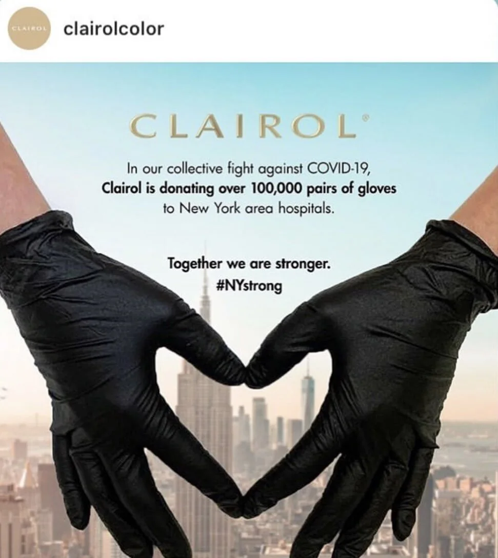 Inside every box of hair color, there’s a pair of gloves. Exactly what New York hospitals were lacking in the face of the Covid 19 pandemic. Clairol donated gloves to hospitals as many health care heroes were lacking basic personal protective equipment. Who says good hair can’t save lives?
