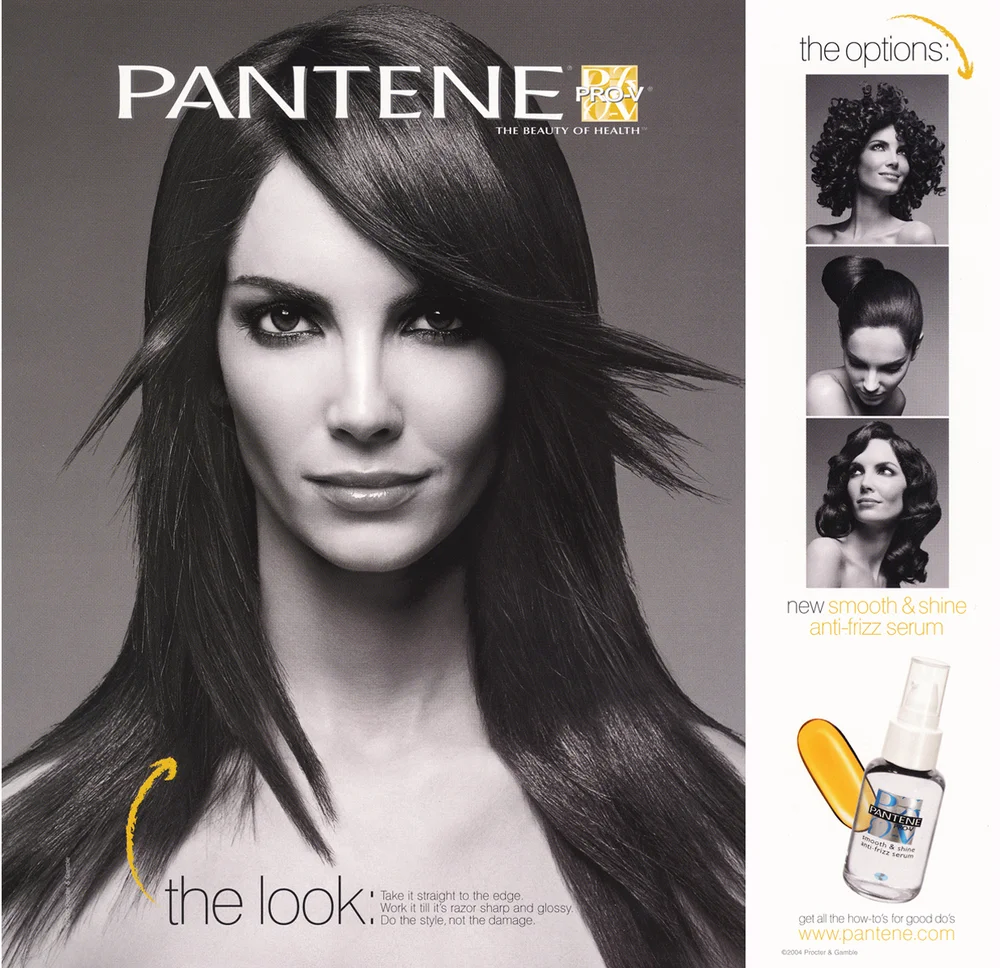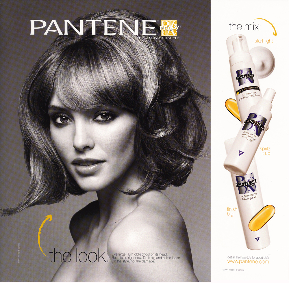 Pantene was made famous for its shampoo and conditioners featuring the girl next door with girl-next-door hair. To shake up Pantene's image, we hired photographer, Greg Lotus, to do more a more editorial take with black and white images of sexy women, which added some vavoom to Pantene's virutally unknown styling line. Pantene now had an attitude with matching how-to's online, and the new styling collection literally flew off the shelves.